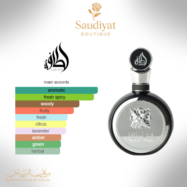 Fakhar Black by Lattafa Perfumes is a Oriental fragrance for men. Fakhar Black was launched in 2022. Top notes are Apple, Bergamot and Ginger; middle notes are Lavender, Sage, Juniper Berries and Geranium; base notes are Tonka Bean, Cedar, Amberwood and Vetiver.