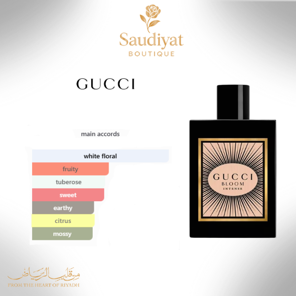 Gucci Bloom Intense by Gucci is a Floral fragrance for women. Gucci Bloom Intense was launched in 2023. The nose behind this fragrance is Alberto Morillas. Top notes are Pear, Ginger and Mandarin Orange; middle notes are Tuberose, Night Blooming Jasmine, Jasmine Sambac and Orange Blossom; base notes are Moss, Patchouli and Coconut.